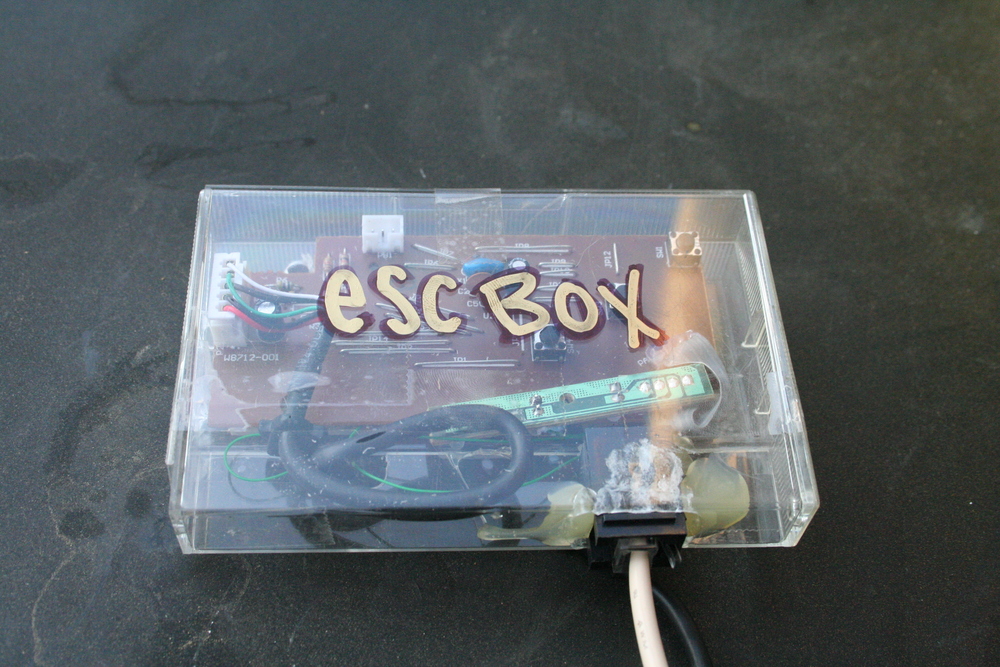 The whole reason for this thing is that the touch-screen kiosk where Crayon Physics is played doesn’t have a keyboard, and it turns out that the only way to restart the levels is by using the Escape key. I suggested a big button on the front of the enclosure that holds the touch screen. Here it is:
